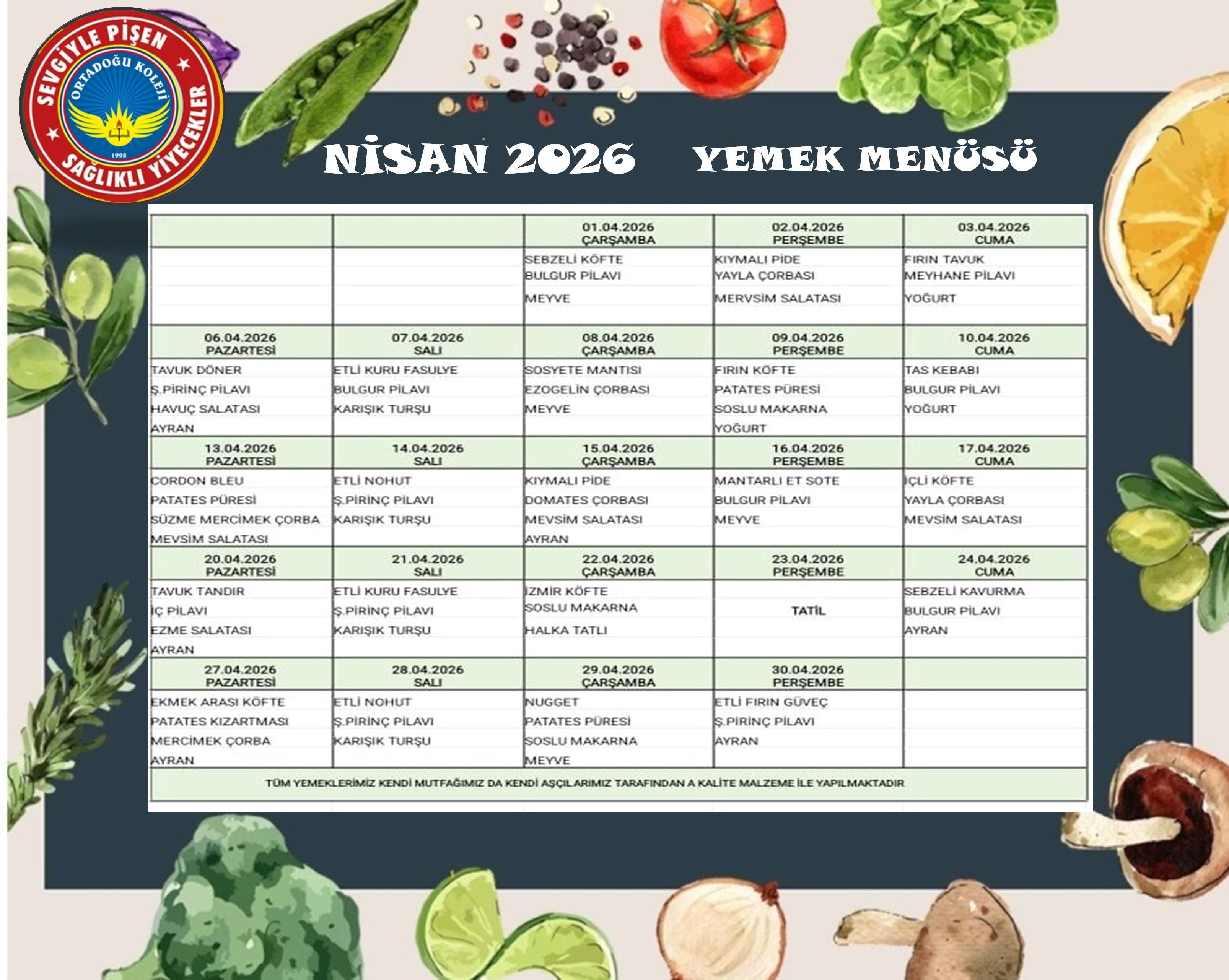 NİSAN AYI FEN LİSESİ YEMEK LİSTESİ