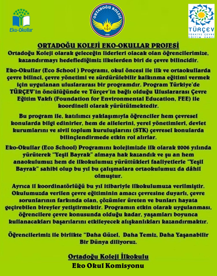 Ortadoğu Koleji İlkokulu Eko Okul Projemiz